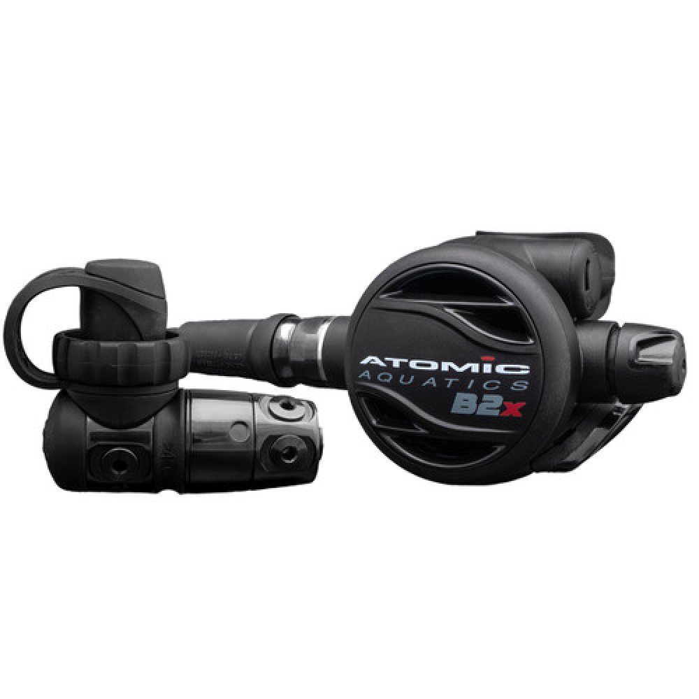 The Atomic B2X Scuba Regulator is the new and improved version of Atomic’s already high quality B2 regulator. What’s so new and special now, you ask? While the performance is still top of the line (what else would you expect from Atomic?), the durability and style of the regulator has been upped a notch. This is achieved through the Diamond-Like Carbon (DLC) coating added over the chrome-plated brass of the first stage (and along its inner pieces). This tribologic design ensures that your regulator stays resistant to corrosion from the saltwater you love to explore. The second stage still features the all-titanium construction for lightweight durability, and the balanced performance of the Atomic B2 Scuba Regulator is just as reliable and exquisite as before.
