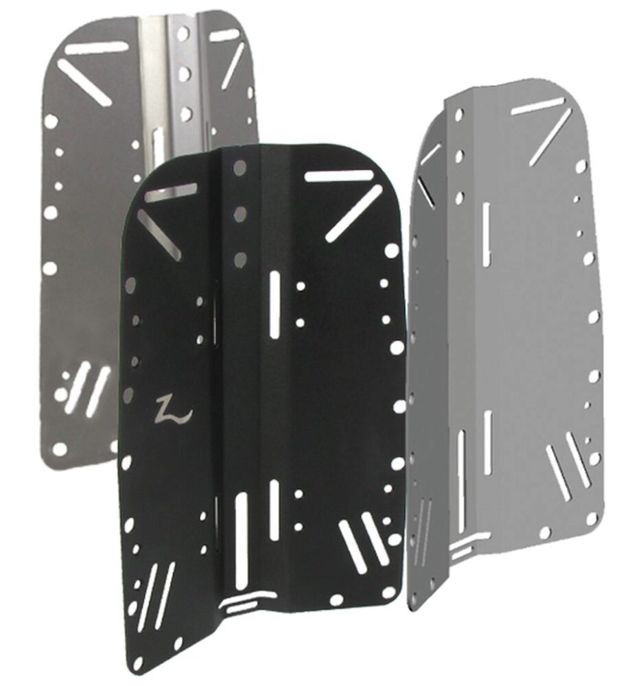 The Backplate Combo is an expandable platform for building your ultimate setup. With capability to mount single or double cylinders, along with crotch straps, scooter rings, sling bottles, shoulder pads, torch canisters and more, Zeagle’s durable stainless steel backplate with simple, single-webbing harness gives divers endless options to customize.