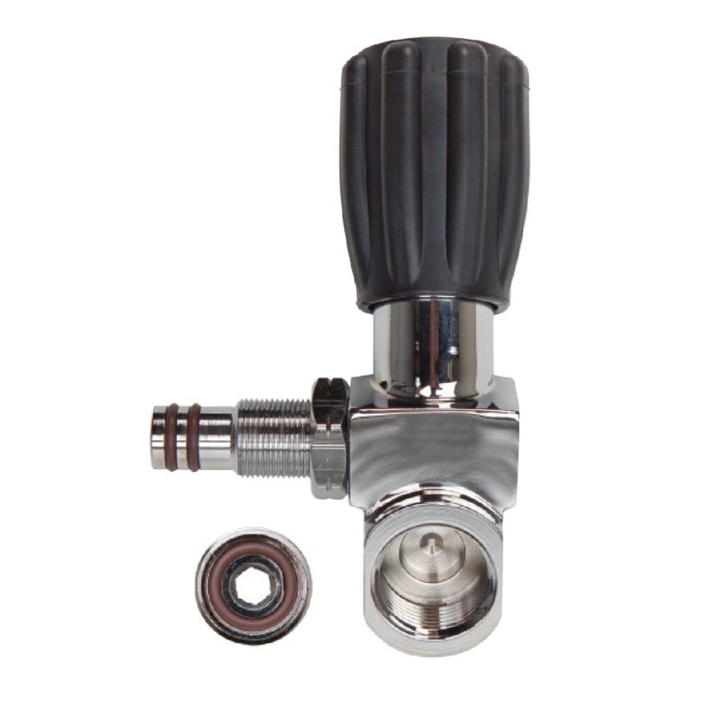 The photo shown is an example of a XS Scuba DIN outlet left hand modular valve (p/n VX300L-30N) paired with a Thermo PRO outlet left hand H adapter (p/n VH200L-N)