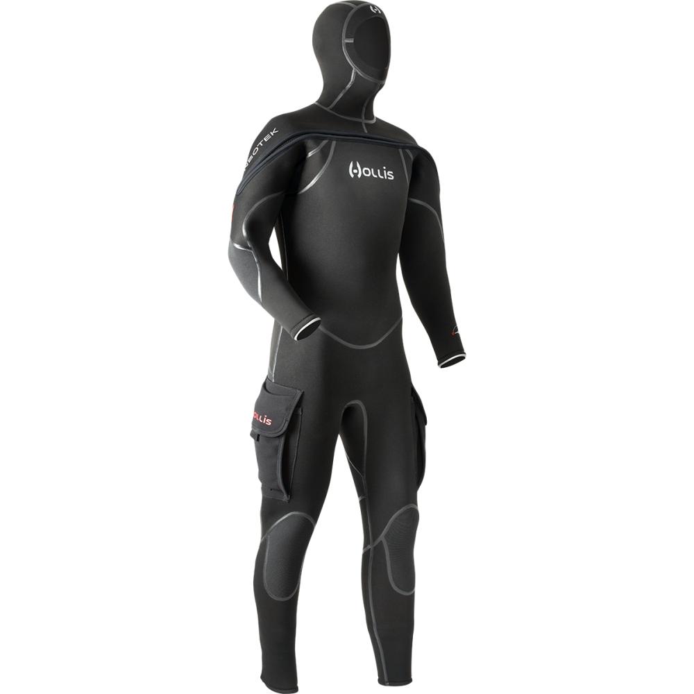 - Constructed from a compression resistant 8/7/6mm neoprene and a Hollis exclusive ThermaSkin inner liner, this V2 suit includes a front neckdam with a revolutionary G-lock horizontal front zipper for easy on/off and a tight barrier against water intrusion.