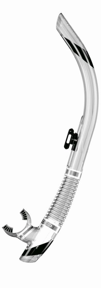 The SV1 Flex snorkel combines comfort and style with ease of breathing. Features include: Scupper Valve, easy on/off snorkel clip system, flexible drop away hose that can easily provide room for a regulator, a dual silicone mouthpiece prevents over-clenching of teeth that would restrict air flow, rotational mouthpiece with ratchet indicators and a conical flared top for high performance breathing.